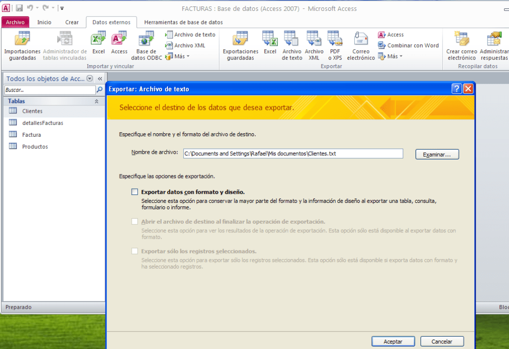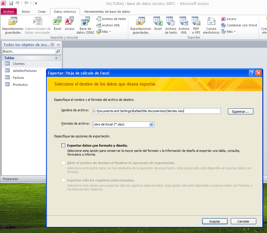 Abrimos el archivo Access y seleccionamos la tabla Clientes en “datos externos” y en la parte de exportaciones le damos a Excell