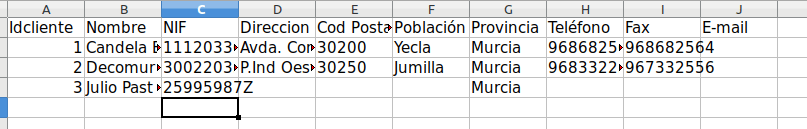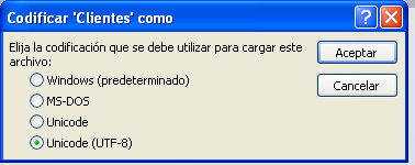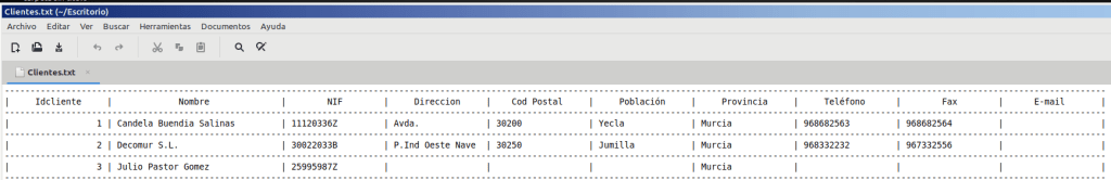 Exporte la tabla Clientes a un fichero de texto. Habilite la opción Exportar Datos con formato y diseño. Use codificación UTF-8