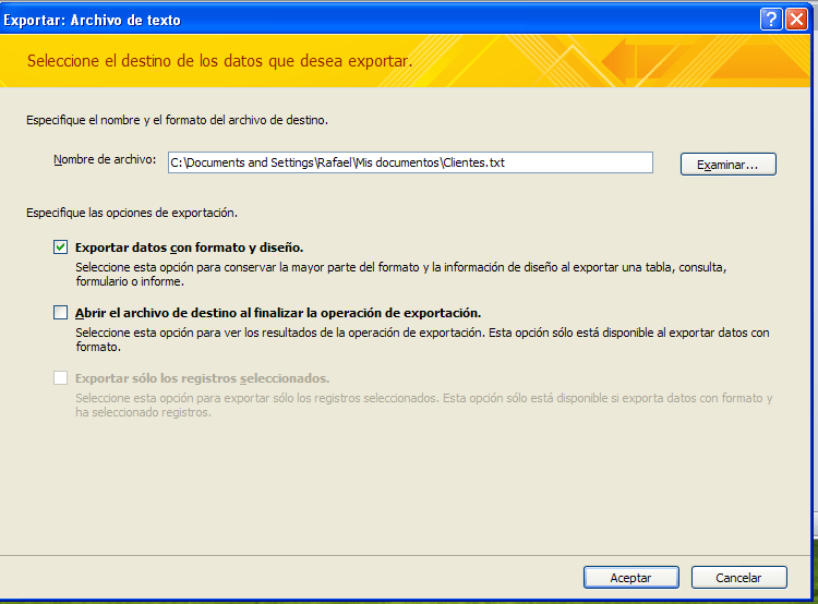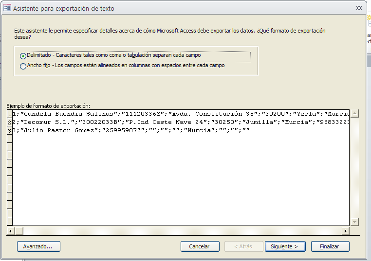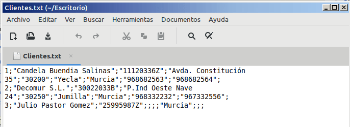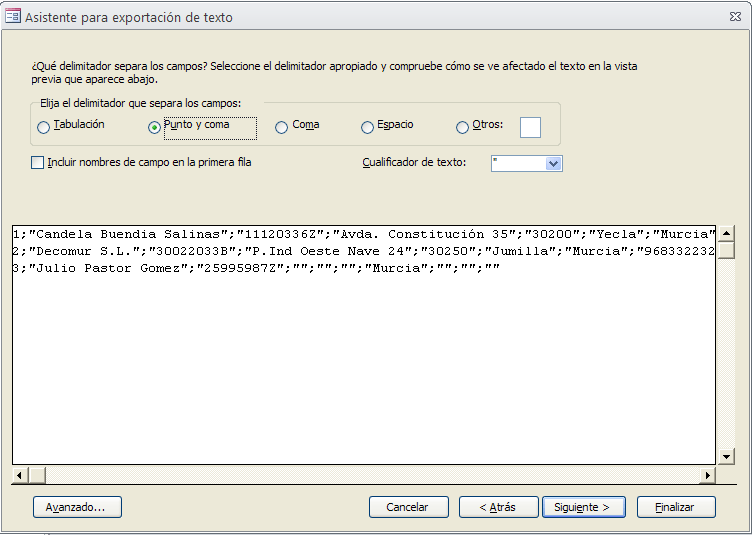 Exporte la tabla Clientes a un fichero de texto. Use el carácter ; para separar la información
