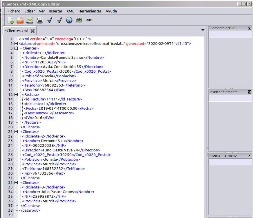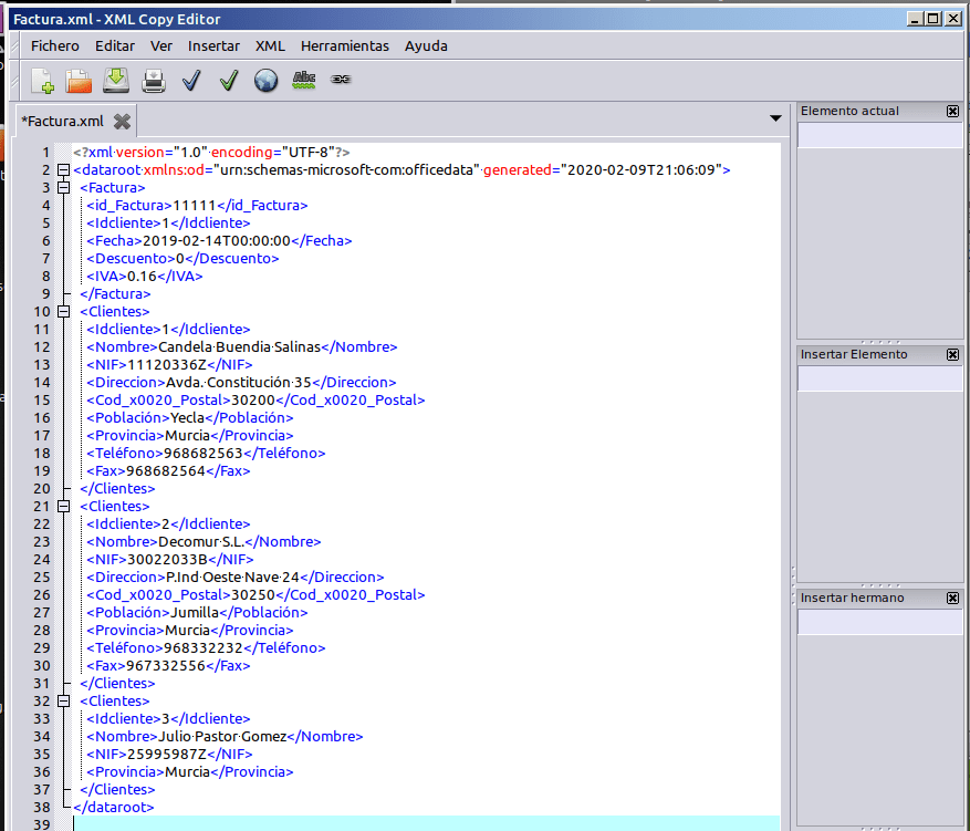 - Pregunta 2: ¿Cuántas etiquetas Clientes se han creado en el xml? ¿El Cliente 1 está dentro de la etiqueta Factura?