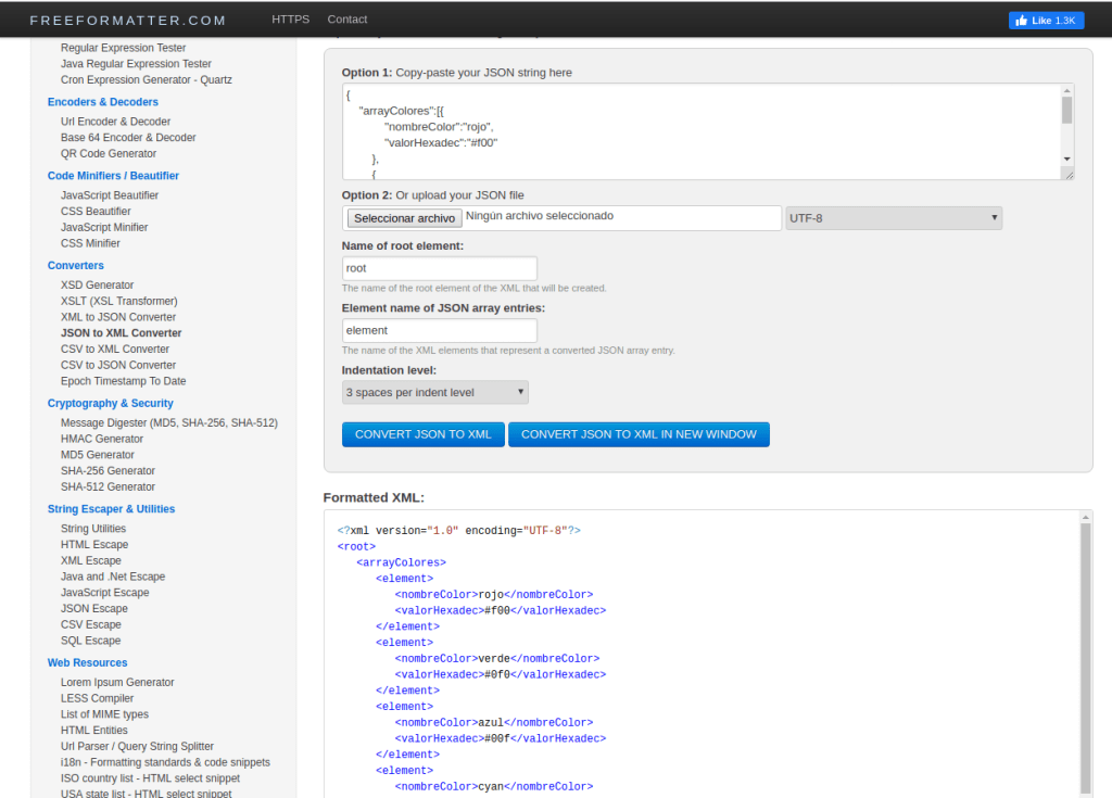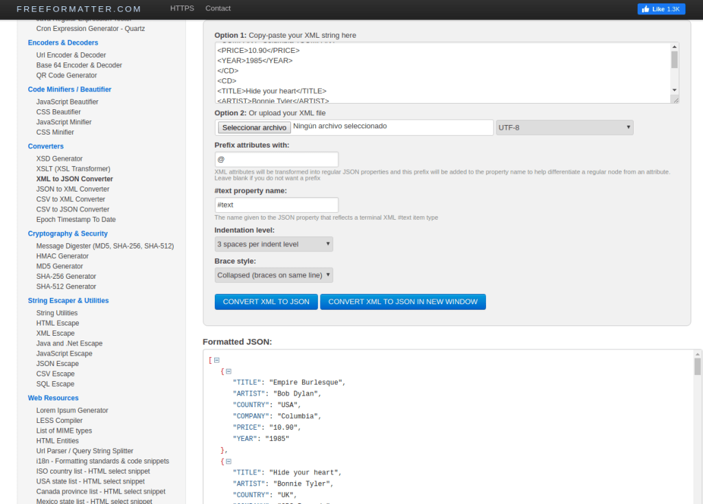 Transforme a formato json el siguiente fichero xml usando alguna herramienta online.