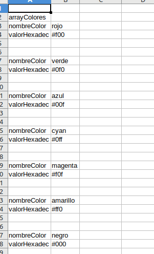 Pues no. En root debería poner Colores o tipos de colores y en element color estaría bien.